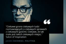 „Wolna myśl, ciekawa rozmowa, świetna atmosfera i możliwość spotkania ludzi, których gdzie indziej, by się nie spotkało - to cechy charakterystyczne Salon of Inspiration. Istotną wartością jest także to, że do refleksji nad światem zapraszani są tam ludzie o skrajnie niekiedy odmiennych zainteresowaniach i zajęciach. Warto wspierać, bo to zupełnie niezwykła inicjatywa na trudne czasy.”